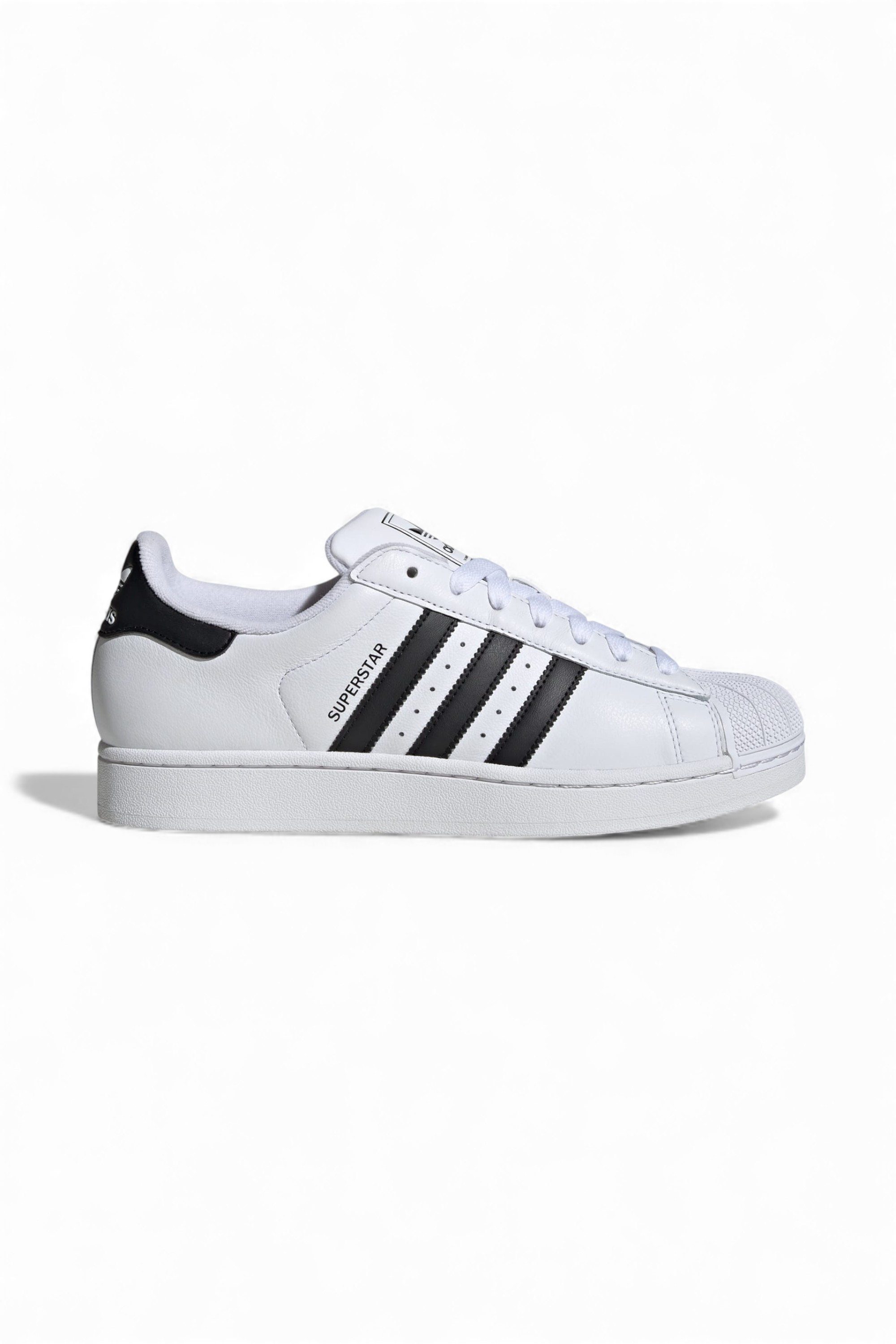 Le iconiche scarpe adidas Superstar sono tornate. 50 anni di sport e lifestyle, racchiusi in queste sneaker basse. La tomaia in pelle liscia e la punta a conchiglia in gomma richiamano l'atmosfera dei campi da basket e dello street style urbano. La linguetta e il collarino imbottiti assicurano una grande praticità, mentre la suola in gomma testurizzata garantisce un gripottimale.