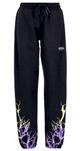 Pantaloni neri con grafica Lightning serigrafata viola e gialla.