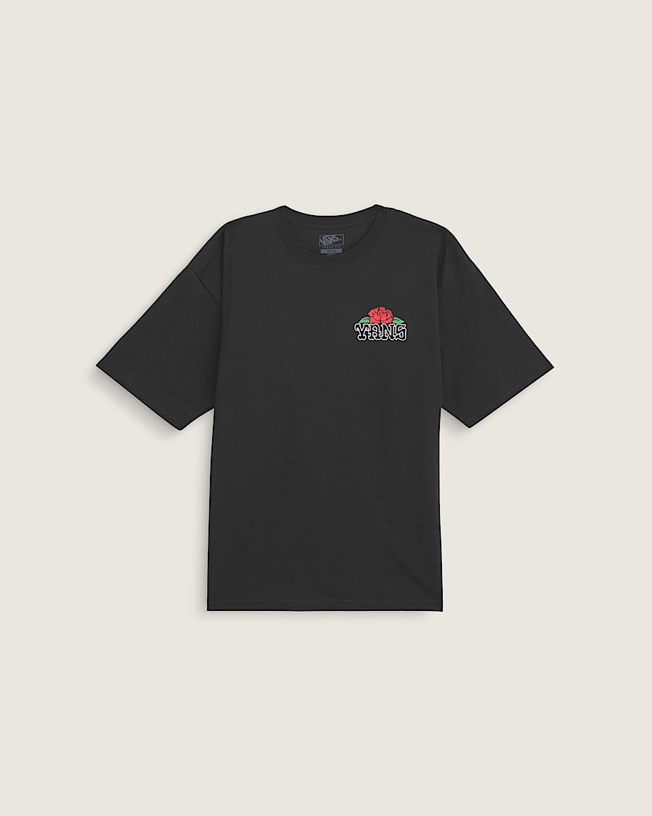 Questa maglietta ampia presenta un sorprendente design a teschio e rosa, che fonde lo spirito ribelle di Vans con immagini iconiche. Il morbido tessuto di cotone ti mantiene comodo per l'uso quotidiano, mentre la grafica accattivante aggiunge attitudine al tuo stile casual. Abbinalo a jeans o pantaloncini per un look senza sforzo che si distingue dalla folla.